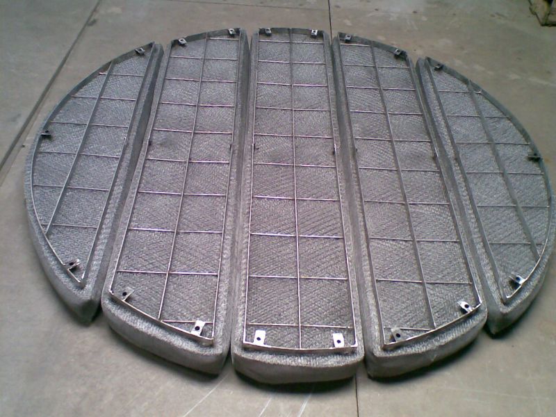 A **demister pad** (also known as a **mesh mist eliminator**) is a wire mesh device used to remove liquid droplets from gas or vapor streams. It works by causing mist-laden gas to pass through a dense mesh of metal or plastic wires, where the droplets collide, coalesce, and drain away due to gravity. Demister pads are widely used in **separators, scrubbers, and process columns** for efficient mist removal with **low pressure drop**, typically capturing droplets ≥3–5 microns.